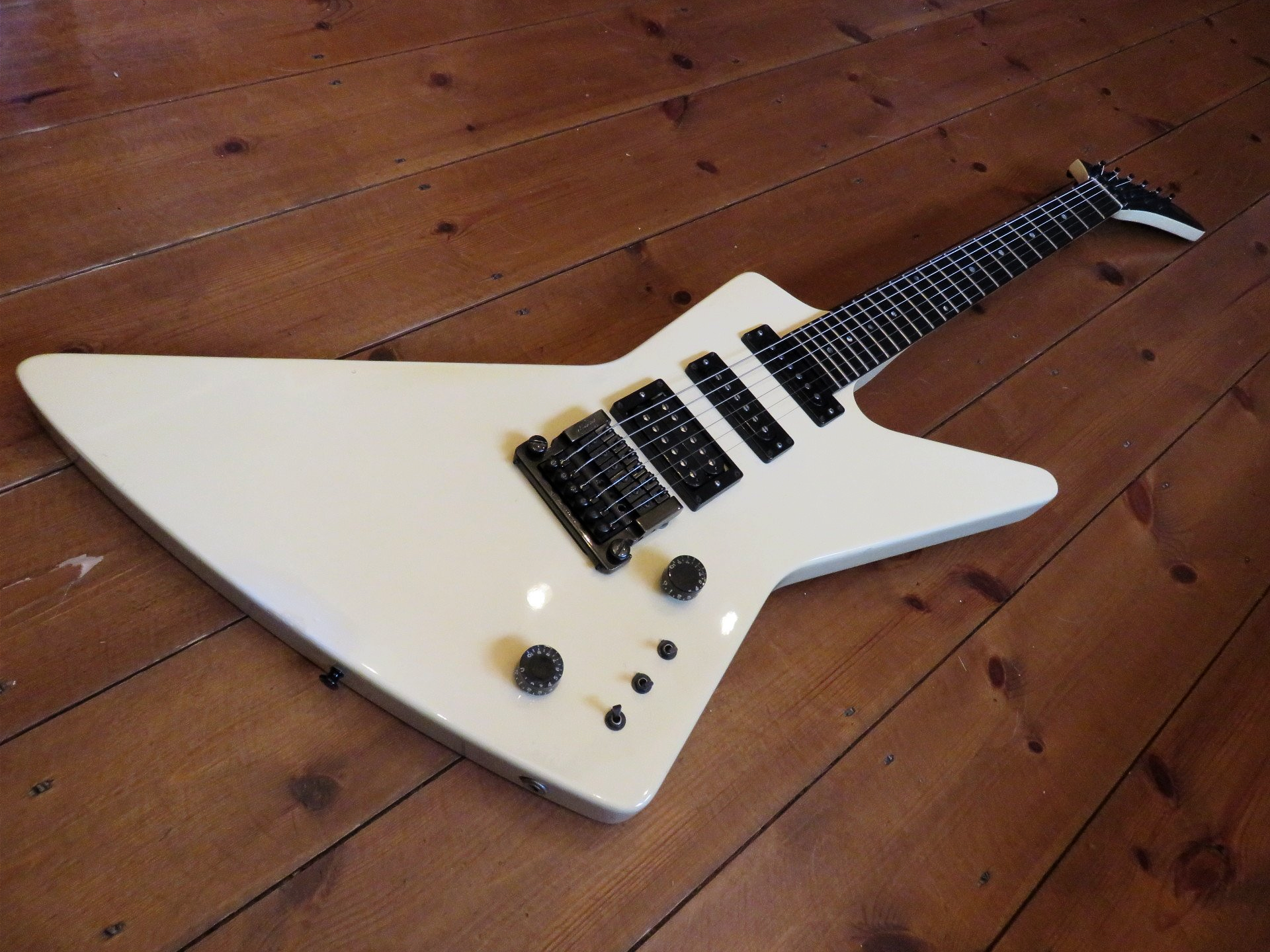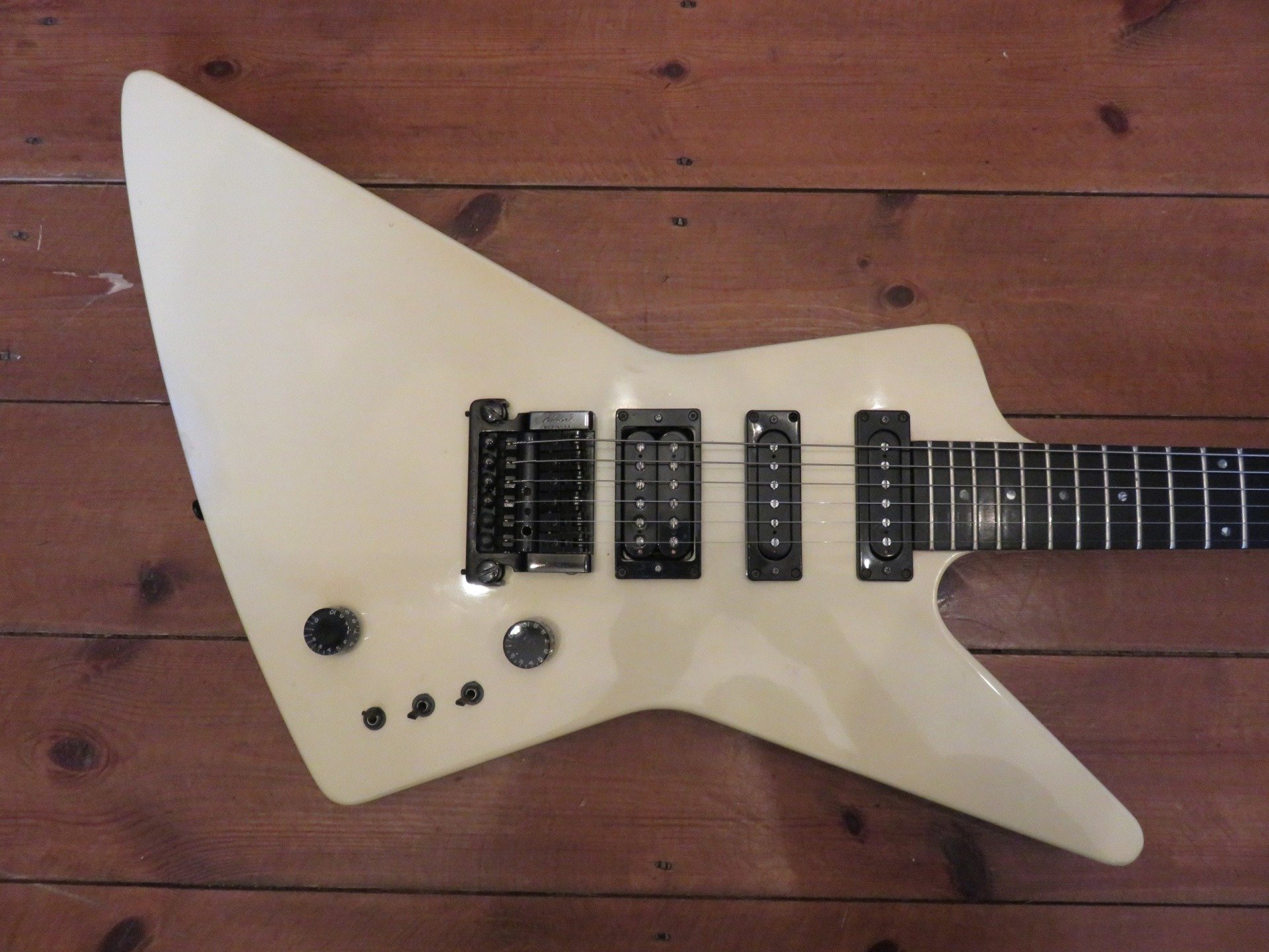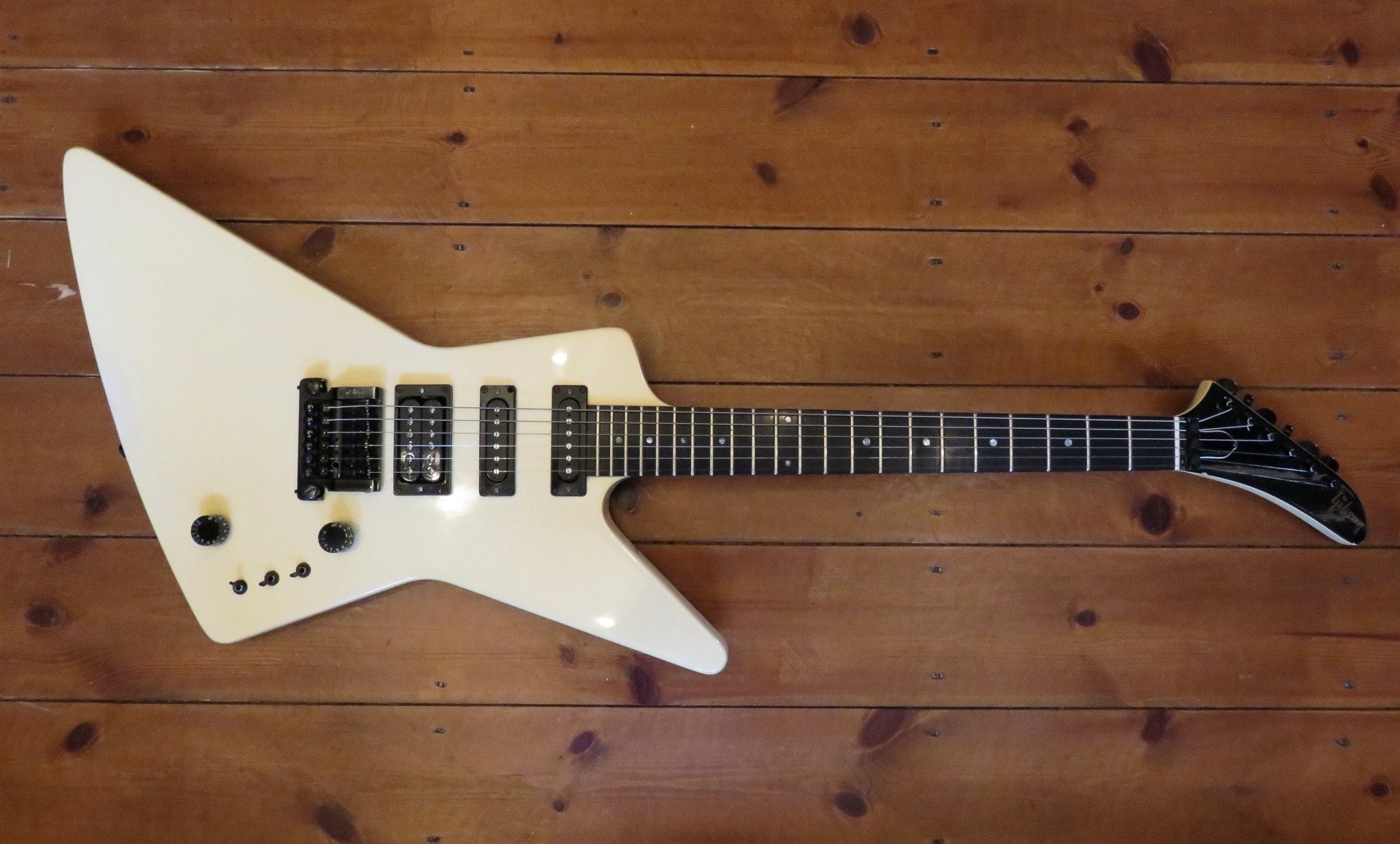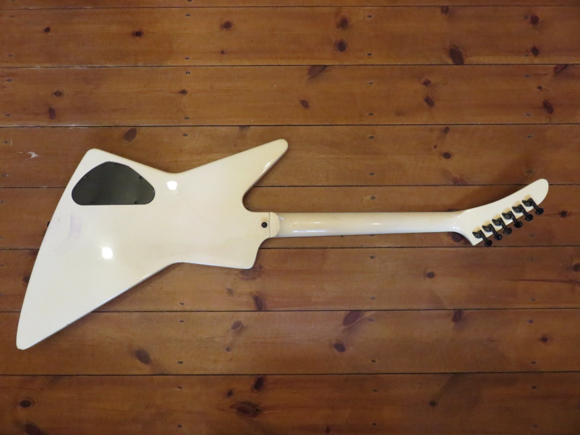 Another short lived 80s Gibson creation. Made from 1985 to 1986 the Gibson EXP425 was an attempt to make a shredders Explorer, with a lower access bottom horn, factory fitted Kahler floating vibrato bridge and a super hot Dirty Fingers humbucker in the bridge position.
