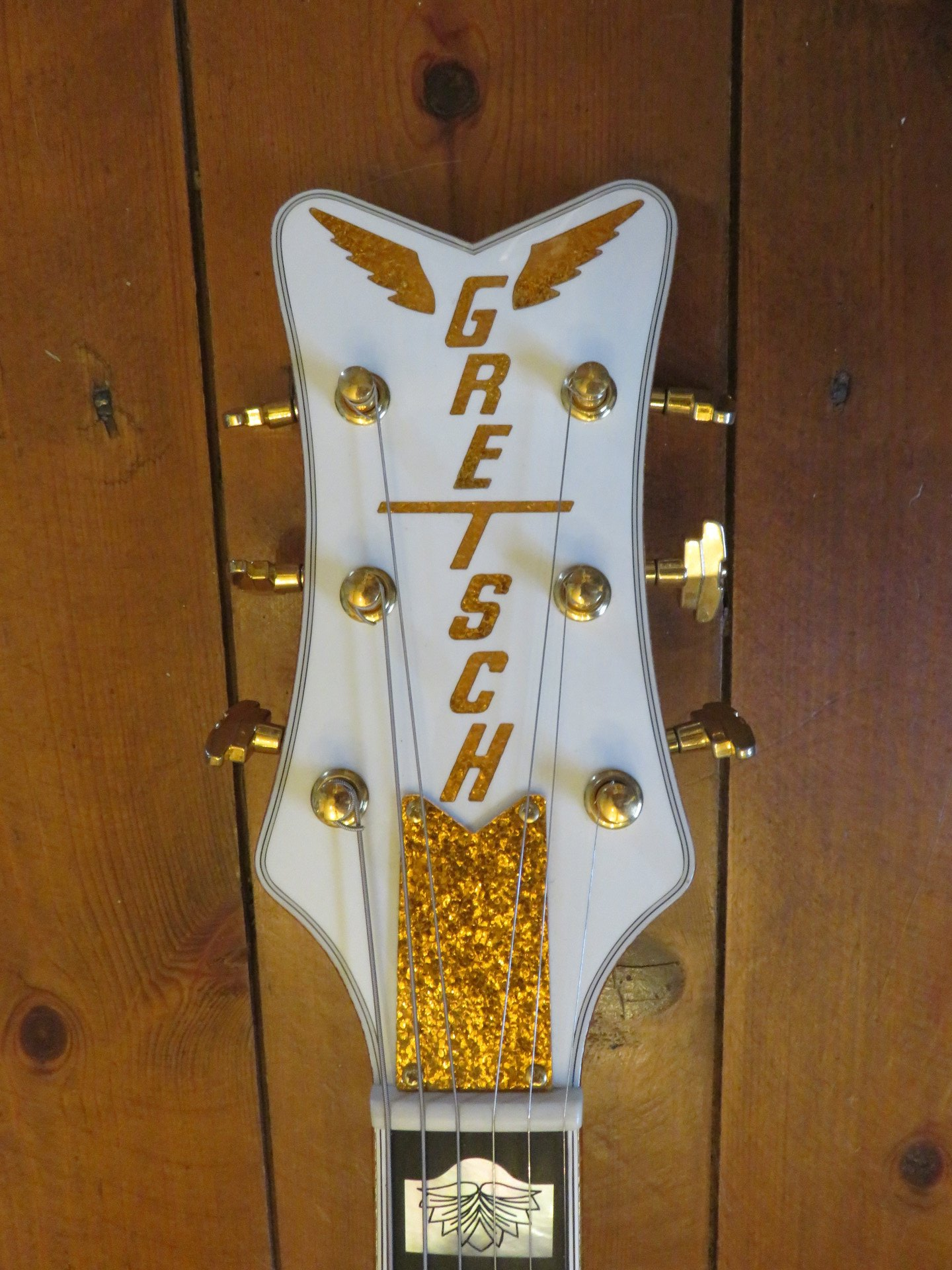 The guitar you can play anything on, Blues, Jazz or Hard Rock, the Gretsch White Falcon can do it all. Complete with the Cadillac G tailpiece, the tuning stability is greatly improved. The previous owner also added an ABR-1 style bridge for added intonation ability.